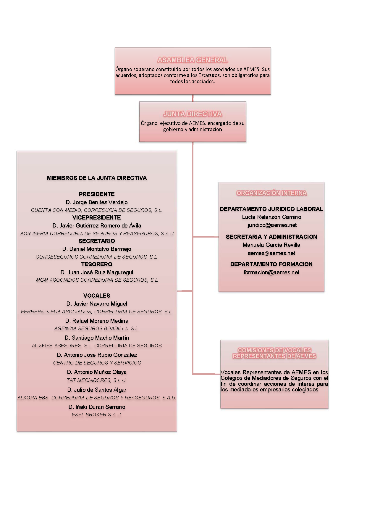 Debajo puede ver el organigrama de nuestra Asociación con los nombres de las personas que forman nuestra Junta Directiva: